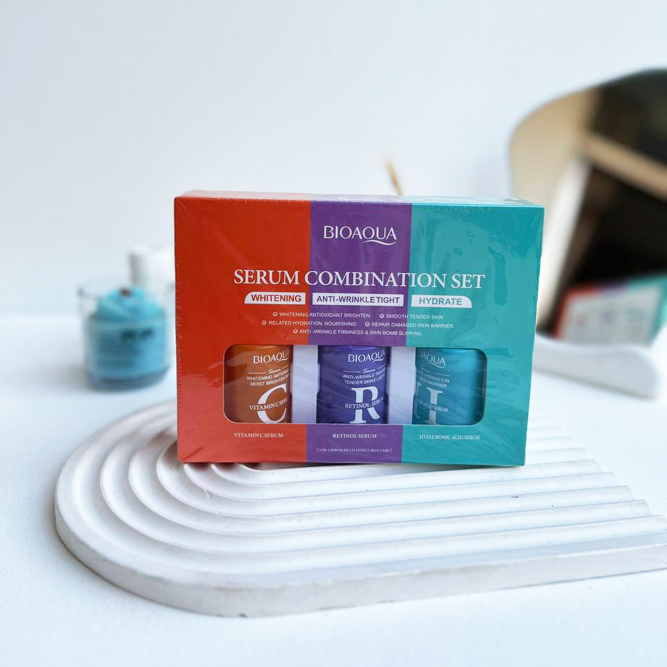 پک سهعددی سرمهای تخصصی بیوآکوا، یک راهحل جامع و اقتصادی برای رفع اصلیترین نیازهای پوستی شماست. این پک با ترکیب سه ماده طلایی مراقبت پوست، به شما کمک میکند تا همزمان به آبرسانی، روشن کنندگی و جوانسازی پوست خود بپردازید. هر سرم با حجم ۳۰ میلیلیتر، یک دوره کامل درمانی را برای شما فراهم میکند.